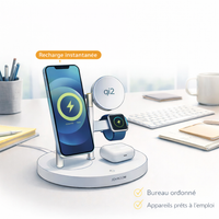 Posez vos appareils, la recharge démarre instantanément. Votre bureau reste organisé, vos appareils toujours prêts.
